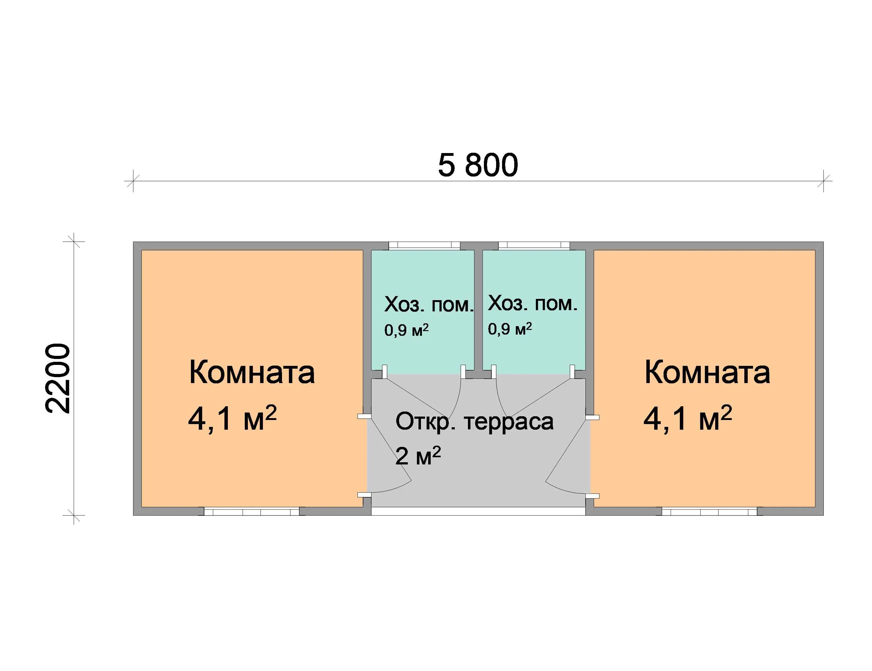 Бытовка для дачи в стиле хай-тек 6х2.4 распашонка6х2,414,4ДВП-Оргалит: